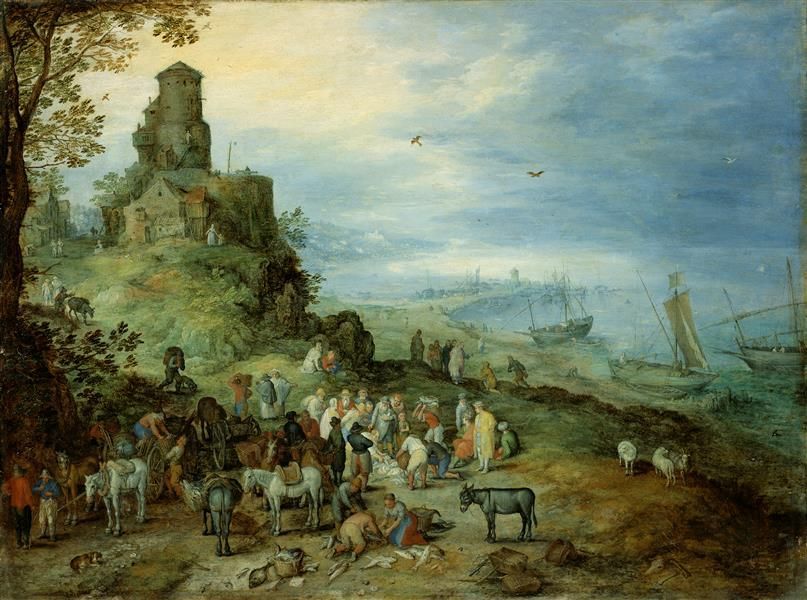 6/9 A-Fish-Market-with-the-Calling-of-Peter-and-Andrew-Jan-Brueghel-the-Elder-Oil-Painting